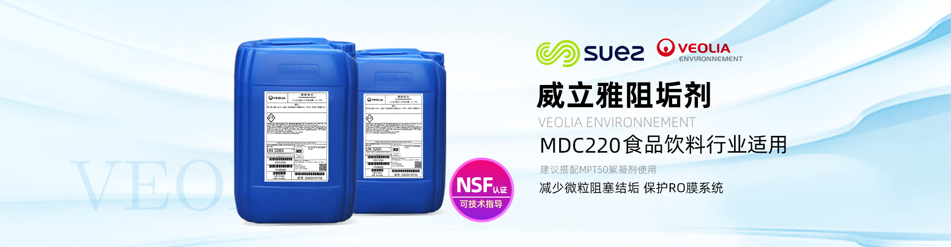 東莞市華仕威水處理器材有限公司隸屬融騰投資旗下子公司之一,是全球大水務集團法國威立雅(原美國GE)官方授權代理商,其膜阻垢劑、絮凝劑、殺菌劑、清洗劑專業運用于食品飲料、乳品酒類、生物制藥、電子半導體、能源化工、電廠等行業水處理系統運行,其阻垢劑高效去除反滲透系統中懸浮物、膠體及有機物,控制微溶鹽的沉積,抑制微生物的污染,防止余氯的氧化,為系統用戶年度節省30%以上維護成本;威立雅百年品牌,為您企業發展降本護航。